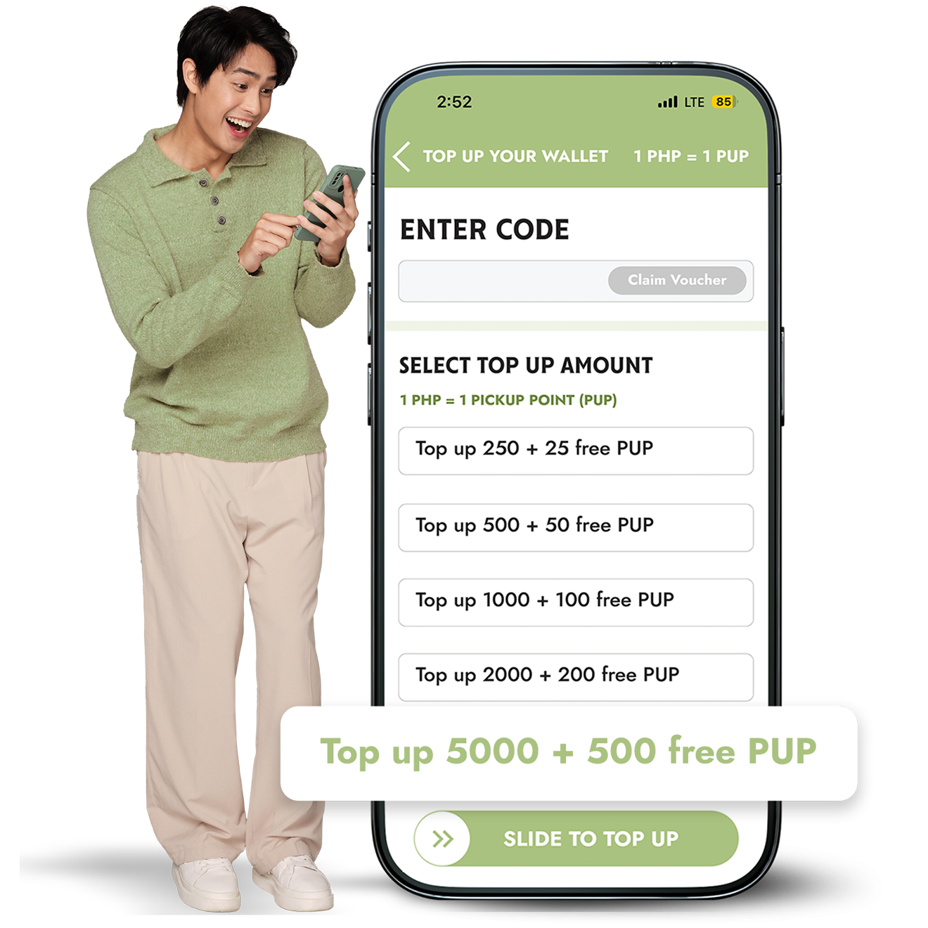a. Claim up to P500 off discount vouchers using 10,000 PICKUP points! More discount vouchers available in the POINTS REDEEMABLE page by clicking your PICKUP points on the PICKUP App.